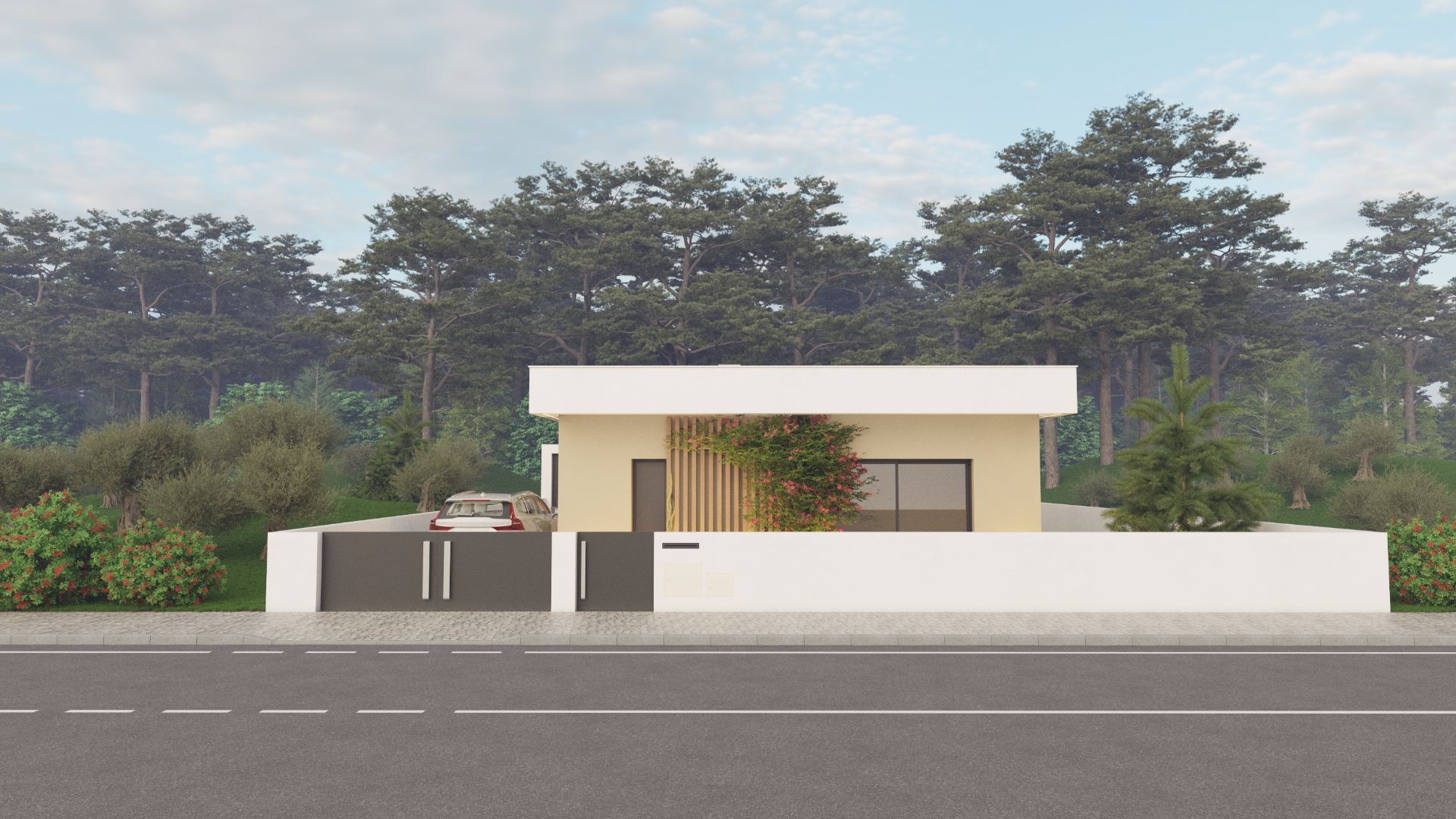 Esta moradia térrea de tipologia T3 foi desenhada para oferecer o máximo conforto e acessibilidade, destacando-se pela existência de uma suite privada. O projeto foca-se na vivência exterior, contando com uma zona de lazer completa que inclui piscina, alpendre e barbecue, além de valências funcionais como garagem e lavandaria.